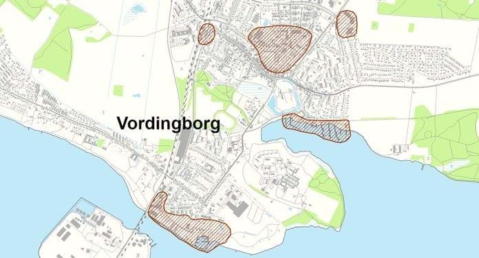 I Vordingborg by udlægges arealer til byomdannelse ved Vordingborg station, i den østlige del af bymidten, i den nordøstlige del af byen, den vestlige del af byen, samt på Sydhavnen som vist på kortskitse. Der udlægges desuden arealer ved lystbådehavnen på Nordhavnen.