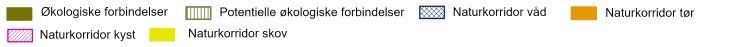 Økologiske forbindelser og potentielle økologiske forbindelser er udpeget og vist på ovenstående kort.