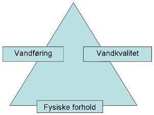 Organismerne i vandløbene, der karakteriserer god økologisk tilstand, har overordnet set tre basiskrav for at kunne overleve: God vandkvalitet, gode fysiske forhold og stabil vandføring. Se figur.